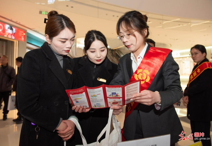 2026年3月13日,江苏省淮安市金融、烟草、市场监管等多部门在融创广场联合开展消费维权宣传活动,现场设点接受消费者咨询,普及消费安全知识,维护消费者合法权益。(贺敬华摄/光明图片)